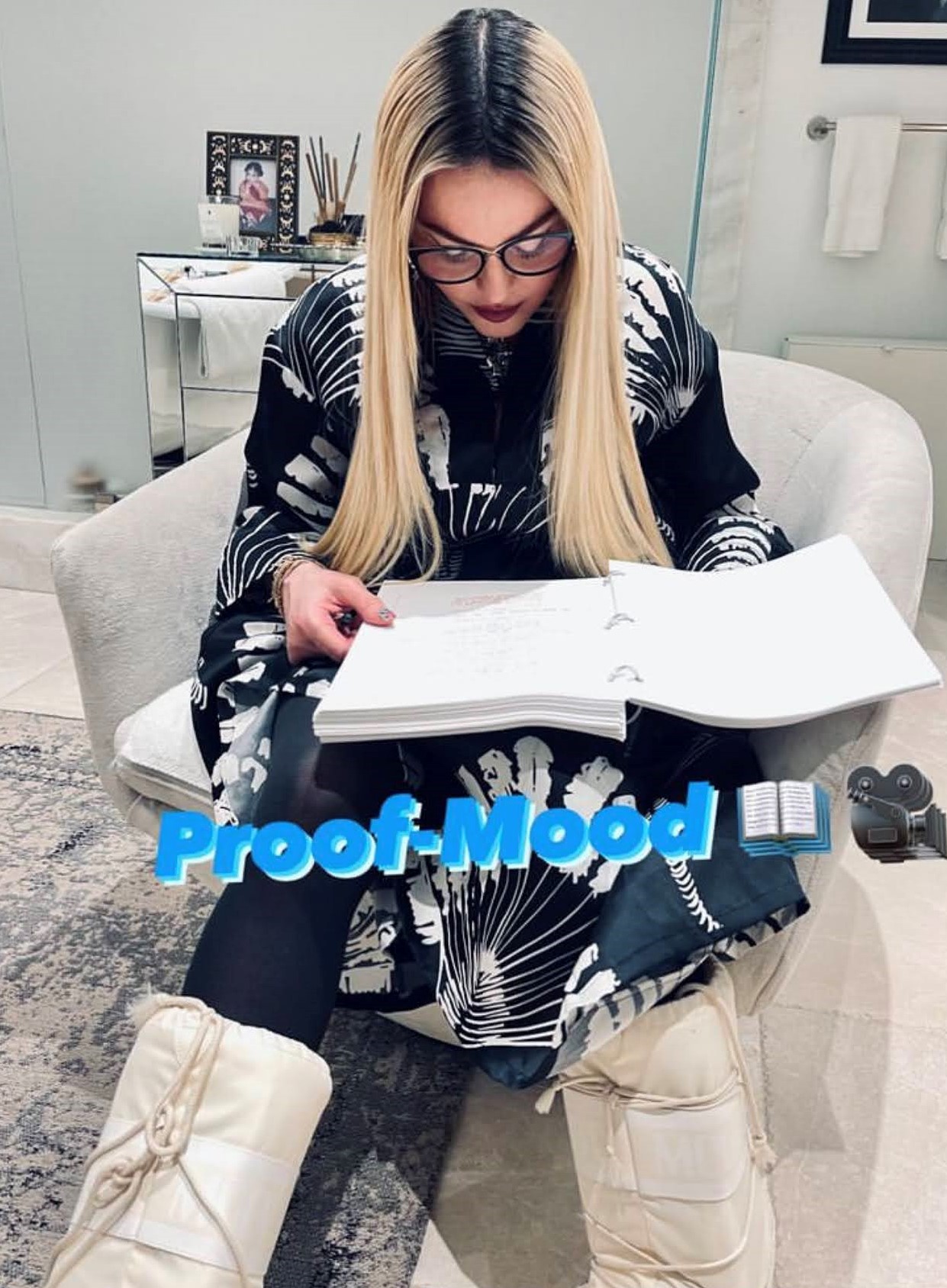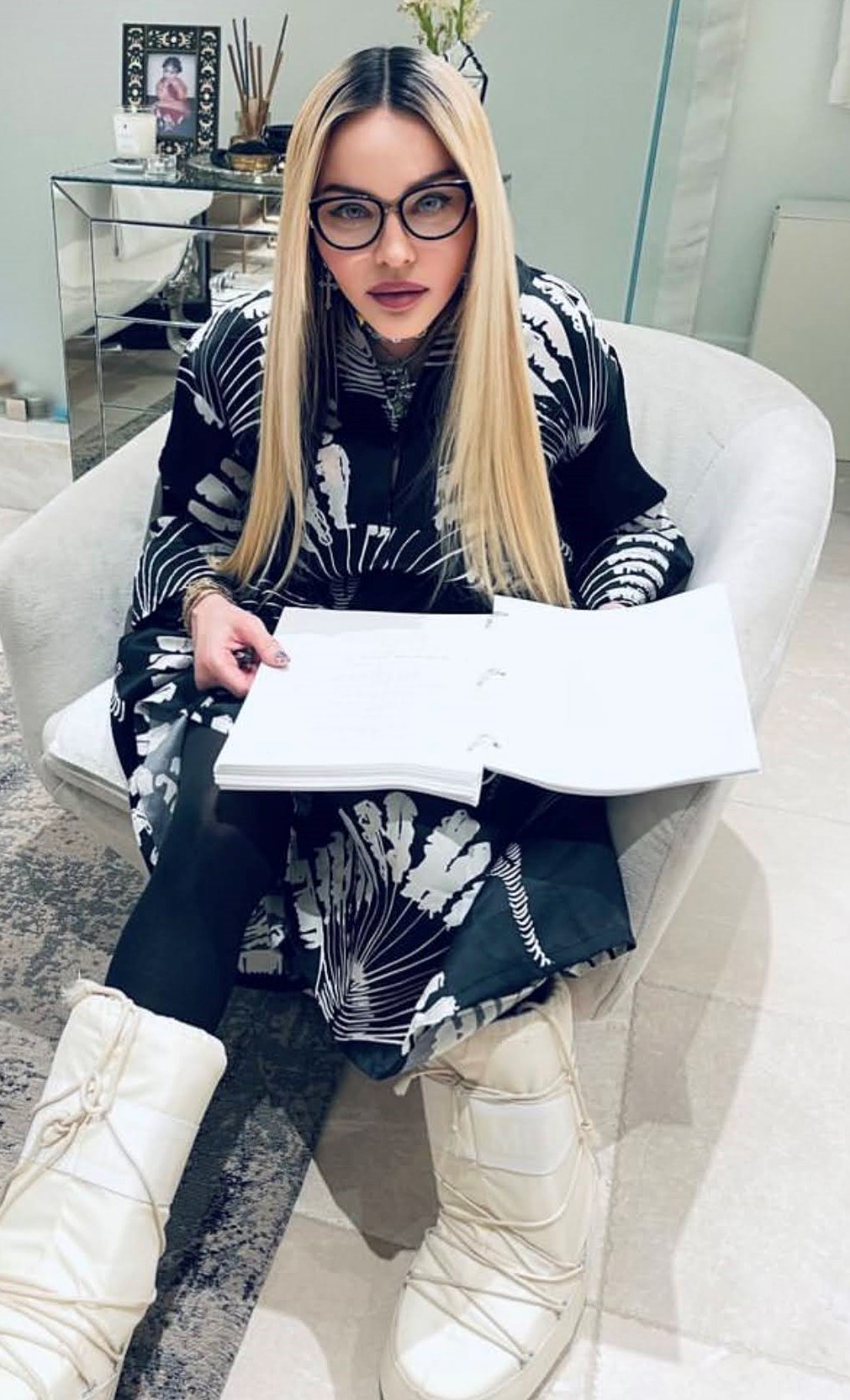 Madonna volvió a subir algunas fotos relacionadas con su película. Esta vez la vemos en su baño leyendo el grueso guión. «Hago lo que mejor que puedo en el baño» es el título que la rubia escogió para regalarnos algunos adelantos.