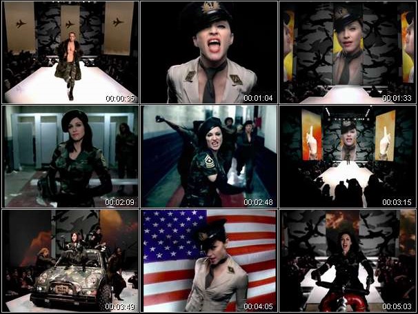 La primera versión del video trata la temática de la guerra y la moda en una comparación o metáfora para referirse a la frivolidad, sin sentido y egoismo de la sociedad, lo cual se refleja perfectamente en la letra de la canción. La escenografía es una gran pasarela simulando un desfile de alta costura, entre el público se encuentran gran cantidad dobles que representan a las celebridades que frecuentan los shows de moda, encontramos una mujer con el estilo de Donatella Versace en primera fila u otra con un parecido muy marcado a Sophia Loren, por ejemplo. Irónicamente, Madonna se muestra como una heroína que lucha ante aquellas escenas de frivolidad, cuando es ella misma uno de esos personajes que suelen estar en primera fila en aquellos espectáculos de moda. Por otro lado, el desfile muestra una colección inspirada en la guerra, los modelos lucen trajes con camuflaje, máscaras de gas, botas y toda la parafernalia militar, en las pantallas gigantes del fondo de la pasarella se muestras escenas de la guerra. Con eso Madonna quiso remarcar esta dualidad pero poniendo énfasis en lo parecido de estos mundos tan distantes.