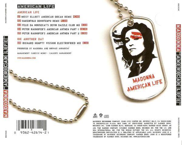 - «American Life» fue el primer single lanzado del noveno album de estudio de Madonna titulado de la misma manera. Estuvo compuesta completamente por Madonna y Mirwias Ahmadzai con quien venía de trabajar en su disco previo.