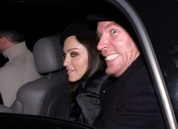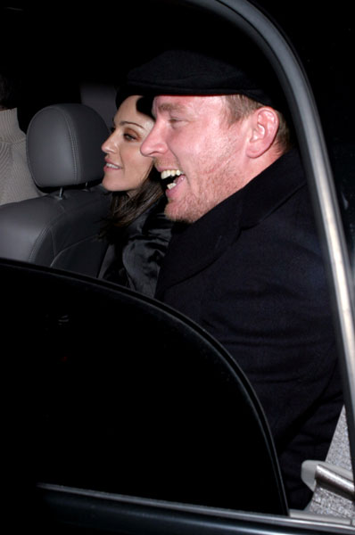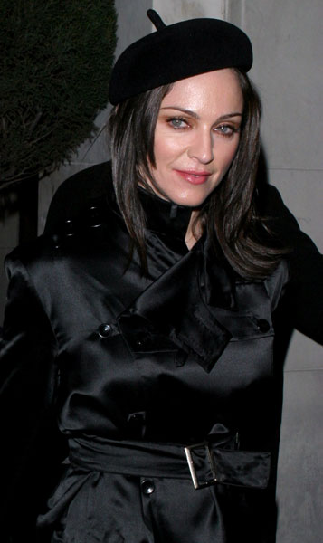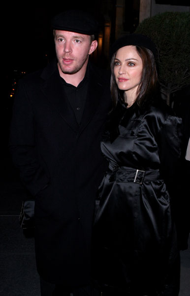 Madonna y su marido Guy Ritchie fueron captados por paparazzis en la noche de Los Angeles mientras salían de disfrutar de una cena en el nuevo «Paramount Bar». La diva vestía completamente de negro, a tono con su boina y su cabello, a punto de comenzar la impresionante campaña de promoción de su disco «American Life».