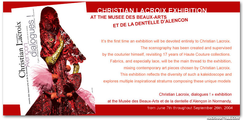 El vestido comenzó a ser exhibido como una de las principales obras en diferentes muestras, primero se expuso en el «Museo de Bellas Artes» de Normandía desde Junio hasta Septiembre de 2004 y luego formó parte de la gran exhibición de Christian Lacroix en el «Museo de Arte Decorativo» de París desde Noviembre de 2007 hasta Abril 2008.