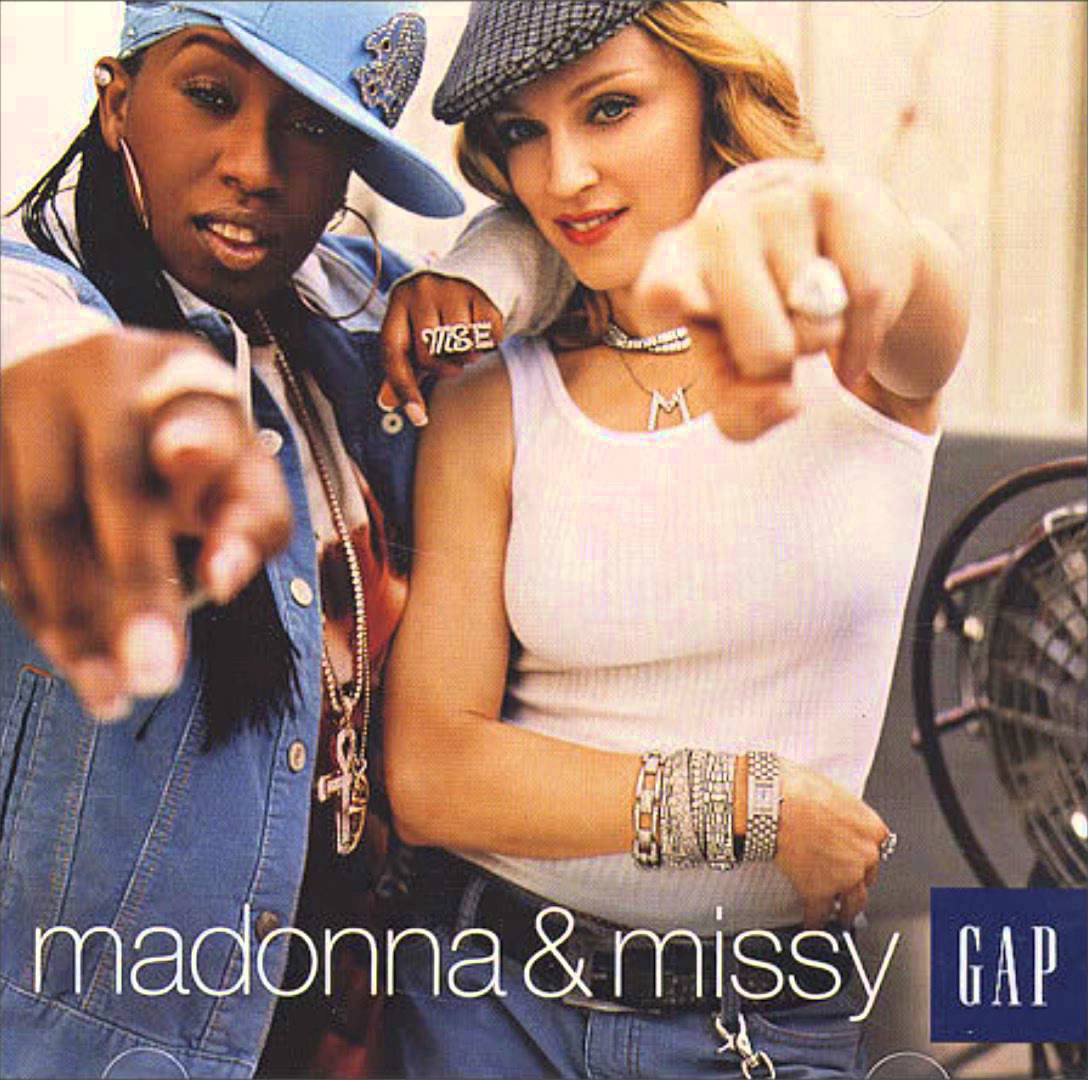 A mediados de 2003, Madonna realiza una gran campaña publicitaria para acrecentar sus arcas y seguir perpetuando su imagen eterna de ícono en todas las áreas. Ya lo habíamos visto en los comerciales de Mitsubishi (1987), Takara June (1995) y la impresionante campaña de Max Factor (1999). Esta vez, le tocaría el turno a las tiendas «GAP». El 16 de Junio de 2003, «Brecha» Inc. anuncia un contrato de U$S 10 millones con Madonna para protagonizar comerciales de televisión y anuncios impresos para la campaña de otoño de la tienda. Días después, el 24, la Reina del Pop y la rapera Missy Elliot se reúnen en los Paramount Studios de Los Angeles para realizar la filmación y la sesión fotográfica de la campaña. Las fotos estaban realizadas por Regan Cameron y los comerciales por Paul Hunter. La colección de «GAP» consistía básicamente en jeans de distintos tipos de cortes y lavados con la característica de tener bordados una letra «M» en el bolsillo trasero (Madonna / Missy), además de camisetas y sudaderas en algodón.