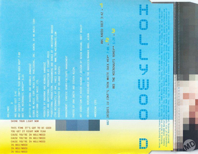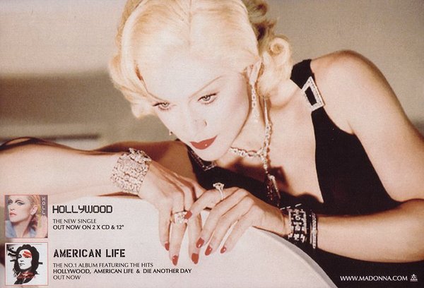 - «Hollywood» fue el segundo single lanzado del disco «American Life» puesto al mercado el 08 de Julio de 2003; una semana después del estreno de su video clip.