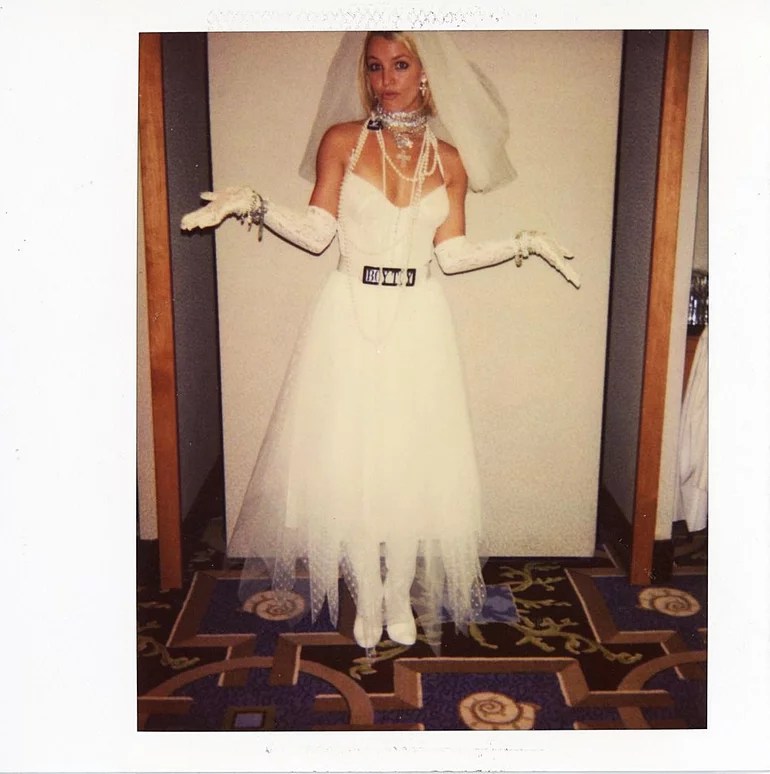 Se levanta el telón y vemo que el escenario estaba dispuesto de manera similar a aquella acutación original, con un gran pastel de bodas en el fondo y sobre el mismo, una joven vestida de novia, con el mismo atuendo que Madonna usaría en 1984, con ramo de flores, velo y el famosísimo cinturón «Boy-Toy», todo a cargo de Arianne Phillips. Cuando la joven comienza a cantar los primeros versos, el público reconoce de inmediato la voz de Britnes Spears quien, luego de duscrubrir su rostro comienza a descender por los escalones del pastel mientras canta. Para el inicio del estribillo, otra joven novia aparece desde un lateral, la inconfundible voz de Christina Aguilera se hizo presente. Ambas cantan en duo, con giros y revolcadas en el piso tal lo hiciera Madonna. Un verdadero homenaje. La música se detiene de repente y el público aplaude, de repente comienzan los acordes de la marcha nupcial, desde el pastel, Madonna asciende lentamente ante los aplausos ahora convertidos en ovasión. Madonna vestida completamente de negro, con botas ajustadas, saco largo y galera hacía su parte como futuro novio de las cándidas jóvenes. Madonna comeinza con los primeros versos de «Hollywood» para ir bajando de a poco las escaleras del pastel. Una vez abajo, junto a Spears y Aguilera realizan una energética coreografía que fuera rematada con un beso en los labios entre ellas. La gran polémica se dispara en ese momento y es ahí cuando la actuación se vuelve icónica.