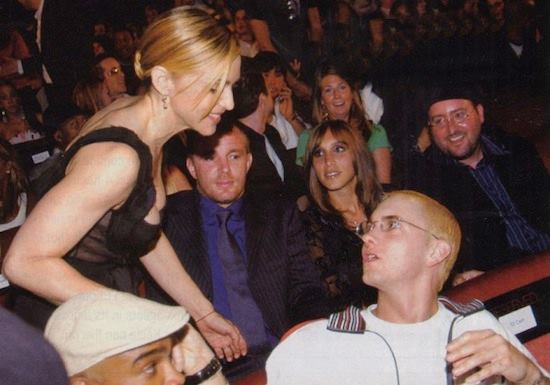 Luego del show, que dejó a todos con la boca abierta, Madonna se acomodó en su lugar junto a su marido Guy Ritchie para disfrutar del resto de la velada, no sin antes saludar cortesmente al rapero Enimen, quien fuera el ganador en la categoría «Mejor Video de Película» con «Loose Yourself» del film «8 Mile». Eminem había ganado a Madonna quien tenía una única nominación en esta terna por su video «Die Another Day». Al parecer, el premio no era ya importante, Madonna se había consagrado como la gran ganadora de la noche con su impresionante interpretación.