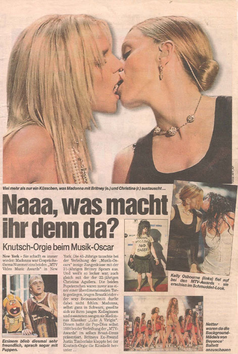 Para ese momento un beso entre dos chicas no era demasiado escandaloso, sin embargo, nadie podía suponer que aquel segundo de televisión sería uno de los más vistos, comentados y recordados de todos los tiempos, al menos de la historia de los premios MTV. El beso entre Madonna y Britney fue tapa de todos los periódicos y revistas al día siguiente y tema de conversación y debate en programas de televisión y radio. Mientras algunos lo consideraron un momento clave para la visibilidad lésbica, otros consideraron que el show perpetuaba estereotipos sobre esta orientación sexual.