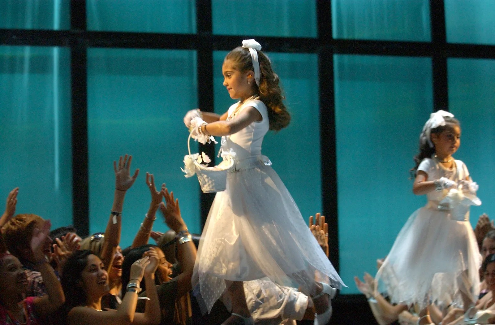 Como se cumplían 20 años de la carrera de Madonna, el show se había planeado como una manera de homenaje a otra actuación icónica de la Reina del Pop: la interpretación de «Like a Virgin» durante los premios MTV Video Music Awards 1984. La música comienza y se puede oir los primeros acordes de «Like a Virgin», mientras dos pequeñas niñas de cortejo caminan por la pasarela tirando pétalos hacia el público, una de esas niñas era la pequeña Lourdes María, hija mayor de Madonna.