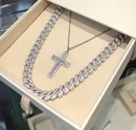 - Cadena y crucifijo de oro blanco y diamantes de «Icelink».