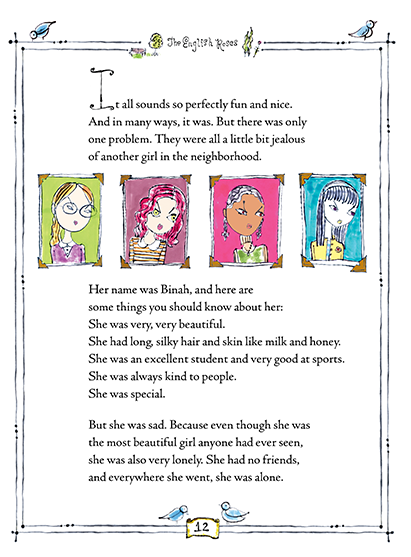 «Las Rosas Inglesas» es un grupo conformado por cuatro chicas de once años, Charlotte, Amy, Grace y Nicole, que asisten a la misma escuela en Londres, viven en el mismo barrio y participan en las mismas actividades, ya sea organizar pícnics de verano o patinar sobre hielo en invierno. Sin embargo, sienten celos de una niña llamada Binah que vive cerca, pues piensan que su vida es perfecta. Detestan su belleza y popularidad en la escuela y disfrutan ignorándola mientras elaboran planes malvados contra ella. Un día, la madre de una de las Rosas les da una lección sobre juzgar a las personas por sus apariencias e insta a ser más amables con Binah. Esa noche, mientras se encuentran en una pijamada de pícnic, las niñas tienen el mismo sueño: un hada madrina las visita, les rocía con polvos mágicos y las transporta para que vean cómo es la vida de Binah en su casa. Allí se dan cuenta de que, al contrario de lo que creen, en realidad se siente sola. Su madre murió cuando era joven y vive con su padre en una pequeña casa donde pasa la mayor parte del tiempo cocinando y limpiando. El hada madrina las regaña y les pide que de ahora en más piensen más amablemente en alguien, en lugar de quejarse de su vida. Las niñas se sienten mal por su comportamiento hacia Binah y la invitan a integrarse a su grupo. Pronto entablan una buena amistad y hacen pícnics, bailes y fiestas juntas y comparten con ella todo lo que les gusta. La historia finaliza con cinco rosas inglesas.
