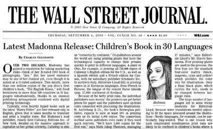 - Madonna firmó inicialmente el contrato con la editorial Callaway el 03 de Marzo de 2003 para publicar en un principio 5 libros que conformarían la colección. El anuncio del lanzamiento del libro fue publicado oficialmente por la editorial el 30 de Junio, apenas Madonna terminaba su gira promocional «American Life Promo Tour».