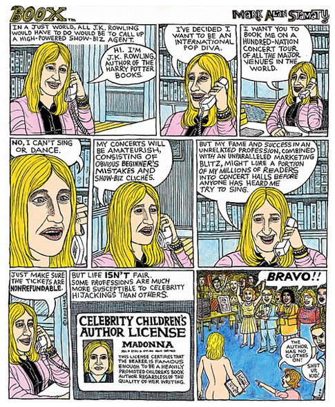 - Como «The English Roses» quedó en segundo lugar de los Best Sellers, mordiéndole los talones a «Harry Potter y la Orden del Fenix», en octubre de 2003, el periódico «The New York Times» publicó un mini comic en donde se veía a la autora de Potter, JK Rowling, tratando de convertirse en una estrella del pop como Madonna (fuente Madonnatribe).