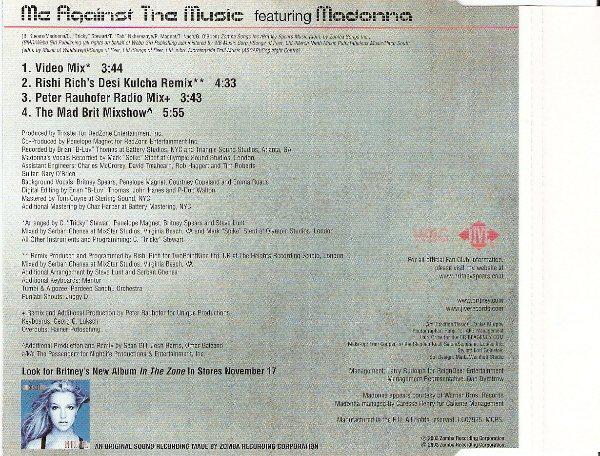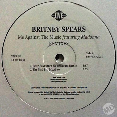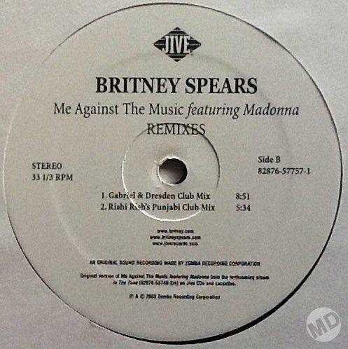 «Me Against the Music» es una canción compuesta originalmente por Britney Spears, Christopher «Tricky» Stewart, Thabiso «Tab» Nikhereanye, Penelope Magnet, Terius Nash y Gary O’Bryan del disco «In The Zone» lanzado al mercado en Noviembre de 2003. Sin embargo, antes de finalizar la grabación de la canción, Spears le muestra a Madonna la primera versión de la misma durante los ensayos de los premios MTV Video Music Awards en Agosto de 2003. Madonna queda encantada con la canción y es así como Spears le ofrece una participación. Luego del gran revuelo mediático por la actuación de ambas (y el famoso beso) en los premios MTV, Madonna acepta participar con la condición de agregar más letra y quedar como co-autora convirtiendo así el tema en un dueto.
