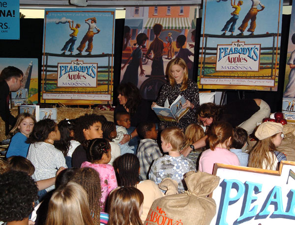 Para continuar con la promoción de su segundo libro infantil, «Mr. Peabody’s Apples», Madonna realizó una presentación con lectura y firma de ejemplares en las librerías «Borders» ubicada en Westwood, California. Al evento asistió un grupo de 30 estudiantes de la escuela «Community Magnet School».