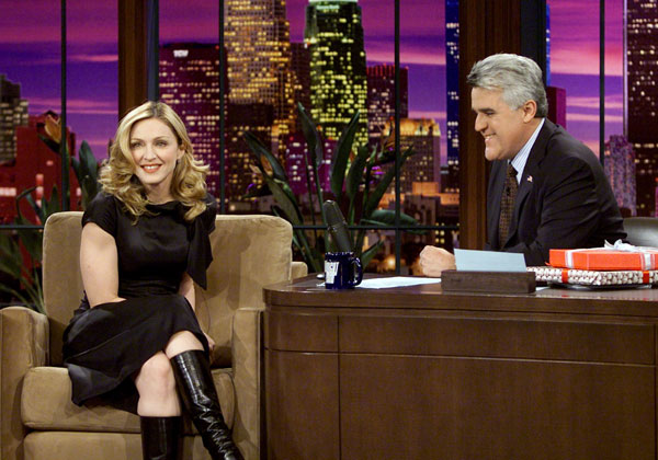 A fines de Noviembre de 2003, Madonna se presentó en el programa «The Tonight Show with Jay Leno». Hacía basntante tiempo que Madonna no estaba con el conductor ya que la última vez que estuvieron juntos fue en 1994. Esta vez, Madonna hizo su aparición en el show transmitido por la NBC en contexto de la promoción de su segundo libro infantil, «Mr. Peabody’s Apples».