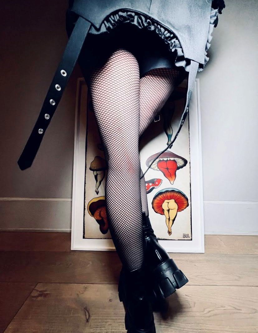 Madonna y una divertida sesión de fotos a cargo de Ricardo Gomes junto a una obra de arte de Cecilia Granata, titulada «Sexy Mushrooms». Madonna tituló este post como «hongos y traseros».