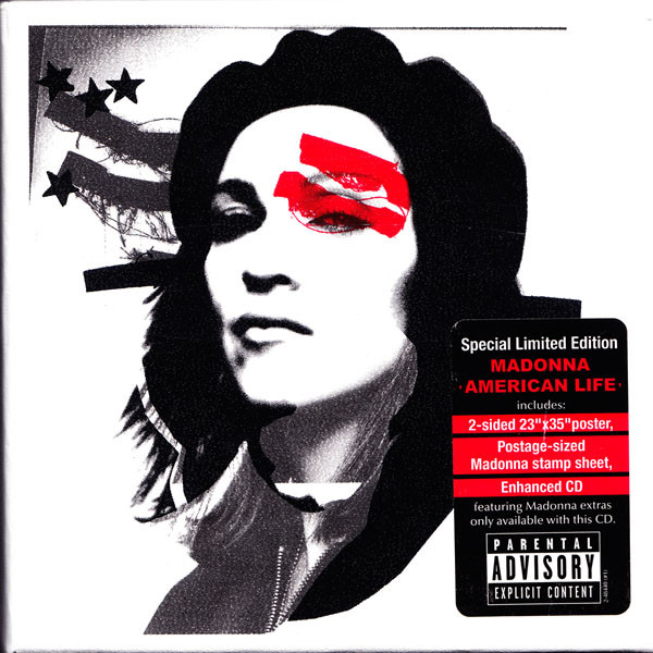 - El LP fue el segundo disco de Madonna en tener en su tapa el logo de «Parental Advisory» (luego de «Erotica» en 1992); debido a la letra explícita de la canción «American Life» que mencionaba la pabara con «f» varias veces. Se realizó una versión editada de la canción y así también se lanzó una version «Clean» del disco.