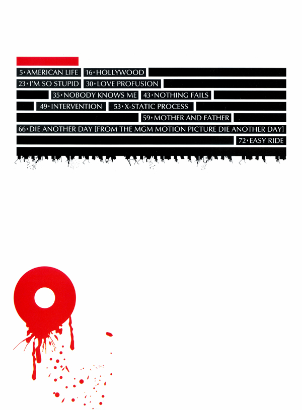 02 – «HOLLYWOOD» (04:24): el segundo single fue lanzado en Mayo de 2003 y este tuvo peor suerte que el anterior cuando ni siquiera logró ingresar en el HOT100 siendo este el primer single en esta situación desde «Burning Up» en 1983. La temática continua la canción anterior, esta vez centrándose las críticas en el ambiente frívolo y nocivo de Hollywood. Madonna nos pregunta irónicamente: «Hollywood… ¿Cómo puede hacer daño si huele tan bien?». Su video muestra una Madonna emulando diferentes estilos del glamour de Hollywood imagenes paradójicas como ella aplicándose botox, caminando sola por la carretera o maltratando a una mucama. Lee el artículo aquí.