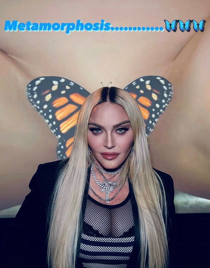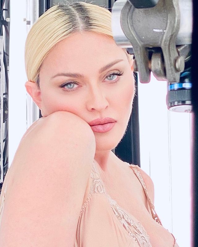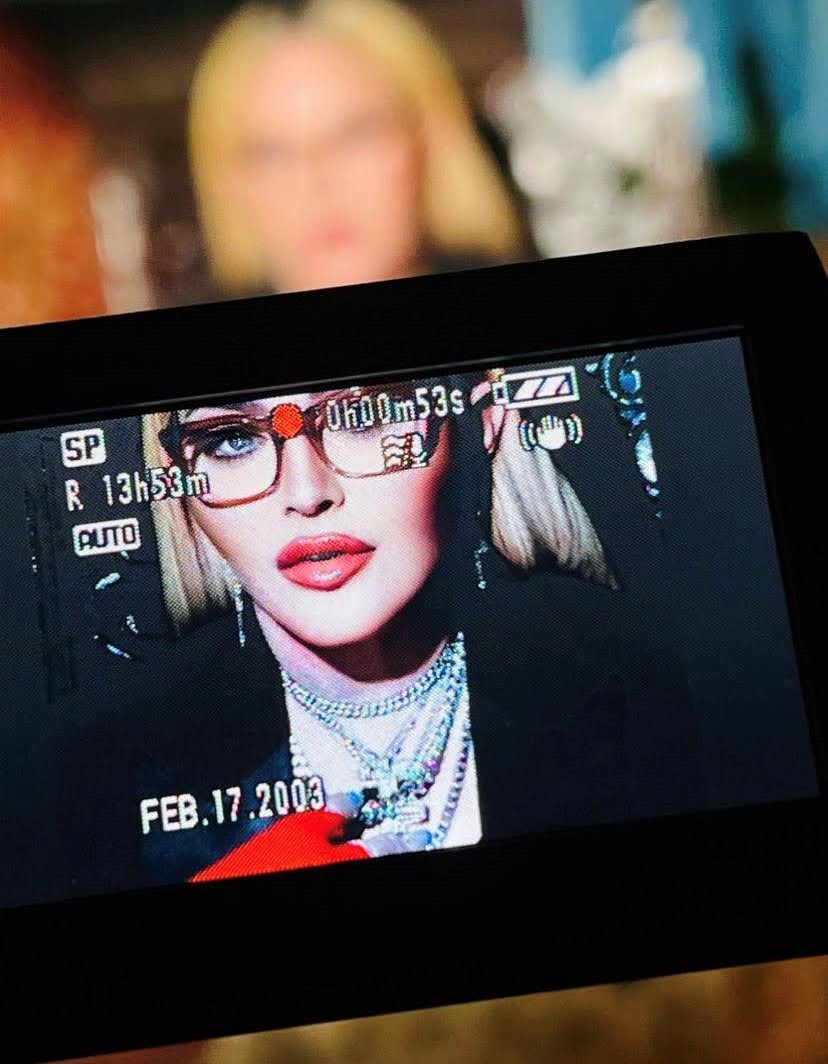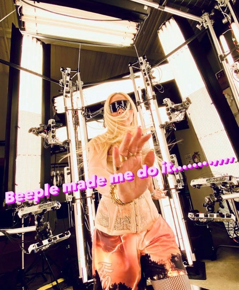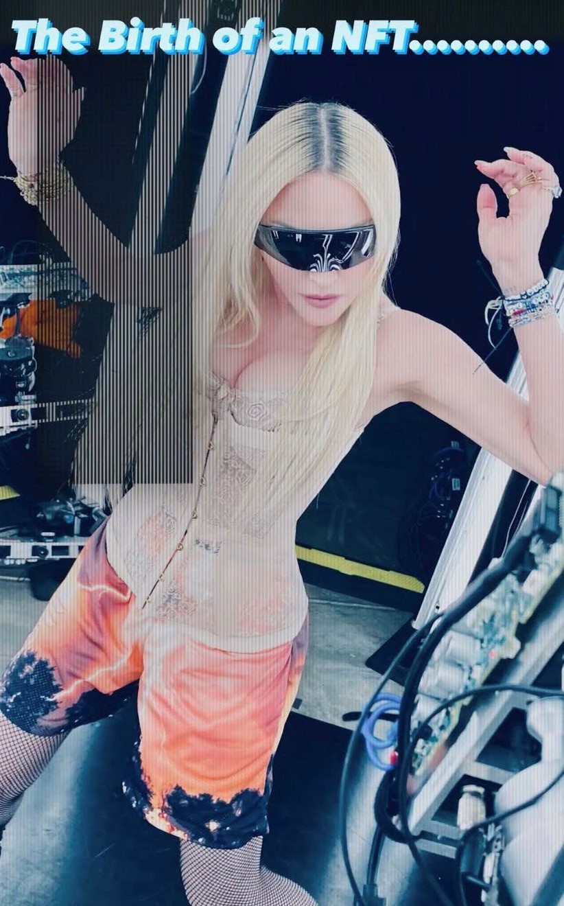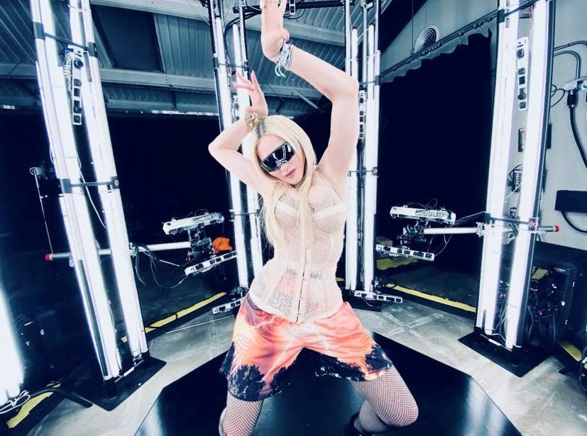 Arriba: fotos publicadas en Mayo 2022 del proceso de filmación y escaneo en 3D de Madonna en donde ella escribe: «el nacimiento de un NFT» y «Beeple me hizo hacerlo». Abajo: fotos publicadas en Mayo 2021, sin ningún tipo de texto ni explicación.