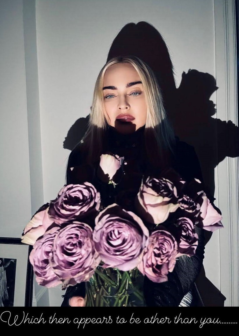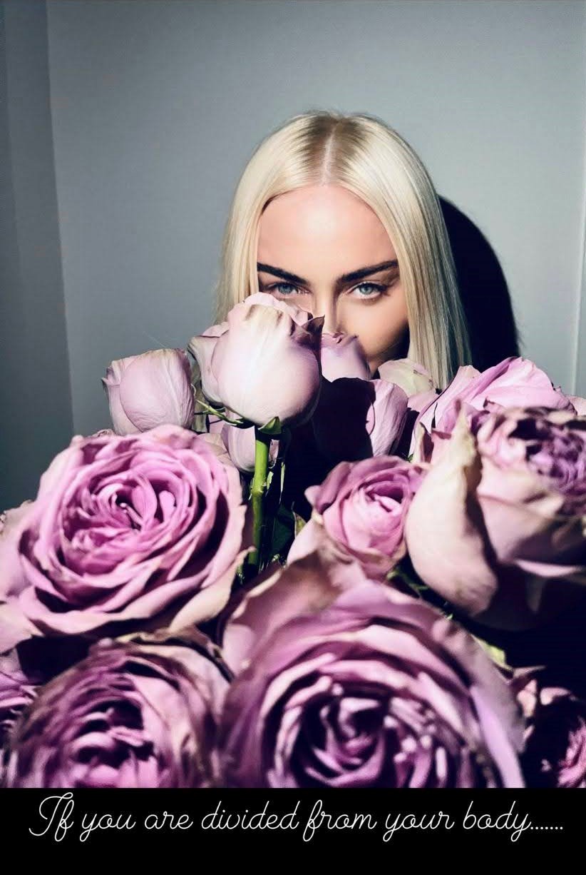 Nuestra Divina se puso romántica y junto a un gran ramo de rosas posa mientras nos dedica unas líneas de Phillip Shepard: «Si estás separado de tu cuerpo, también estás separado del cuerpo del mundo que parece ser diferente a ti o estar separado de ti en lugar de ser una continuación de lo que perteneces».