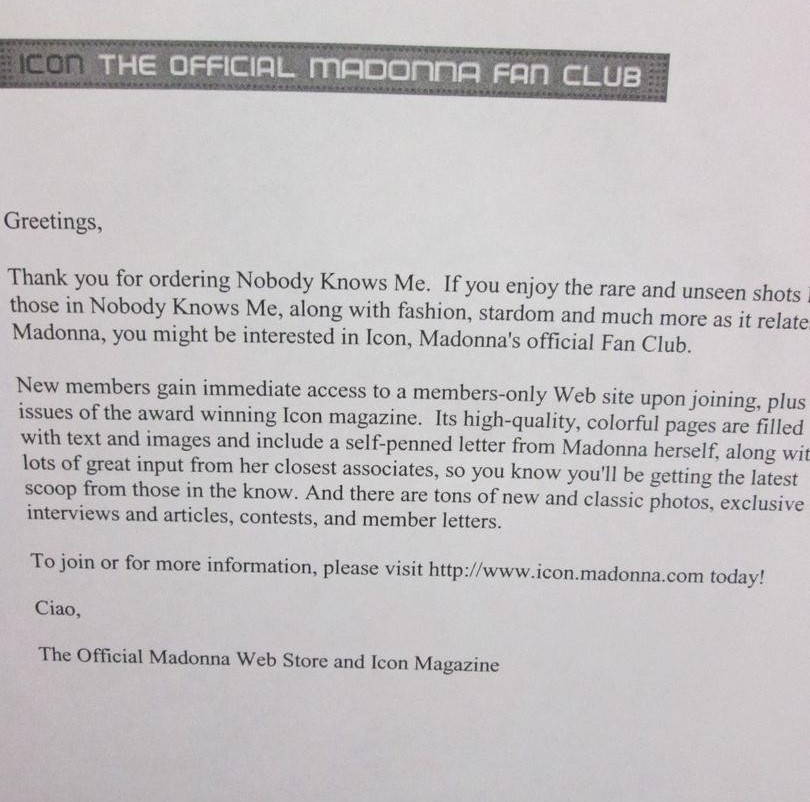 - El libro de edición extremadamente limitada estuvo a la venta online y sólo para socios de ICON durante un mes en la web madonna.com y se acompañó de una carta de agradecimiento.