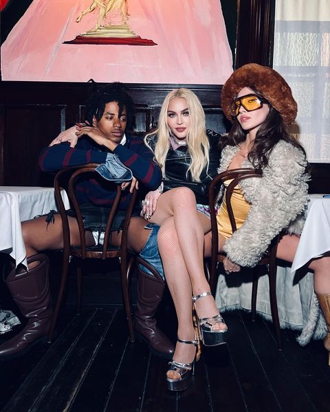 Madonna y un grupo de amigos decidieron salir a cenar la noche del 06 de Junio al nuevo y trendy restorán «Horses». La diva lució espléndida con un short multicolor y sus nuevas y preferidas sanfalias de plataforma plateadas de «Prada». En su post publicó: «no hay adultos sentados en esta mesa» y junto a ella se puede ver a su asistente y amiga Maha Dahil Jakson, al artista y orfebre, Alligator Jesus; al esgrimista Miles Chamley-Watson, la fotógrafa Nadia Lee Cohen y el artista Tony Touchdown.