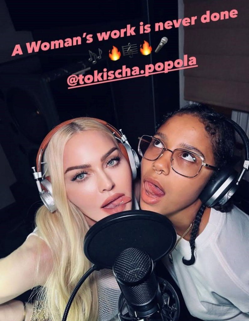 Después de ser apodada la «Madonna dominicana» por algunos comentaristas y artistas, Tokischa se vinculó con la «Material Girl» original. En su historia de Instagram, Madonna publicó algunas fotos junto a la cantante posando en un estudio de grabación y etiquetando también al productor Mike Dean. Tokischa compartió la foto de ella y Madonna, y agregó, «bellaca y putona», una referencia a una de sus canciones más populares lo que generó aún más especulaciones sobre una próxima colaboración.