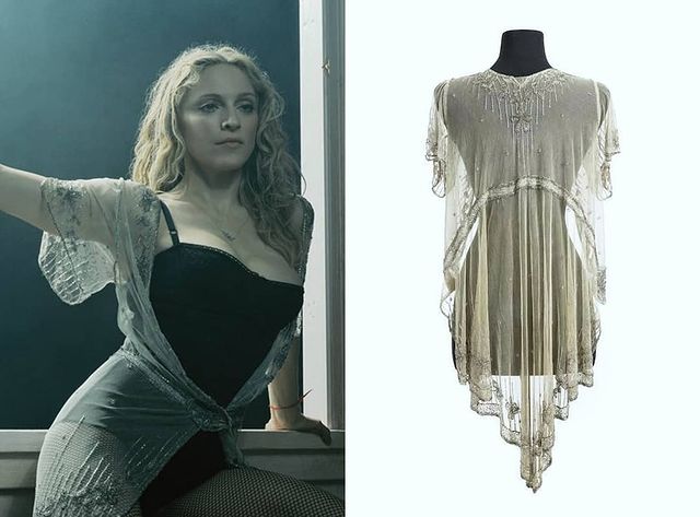 - Túnica vintage original en tul color plata con bordados de lentejuelas y piedras de «Palace Cosume».