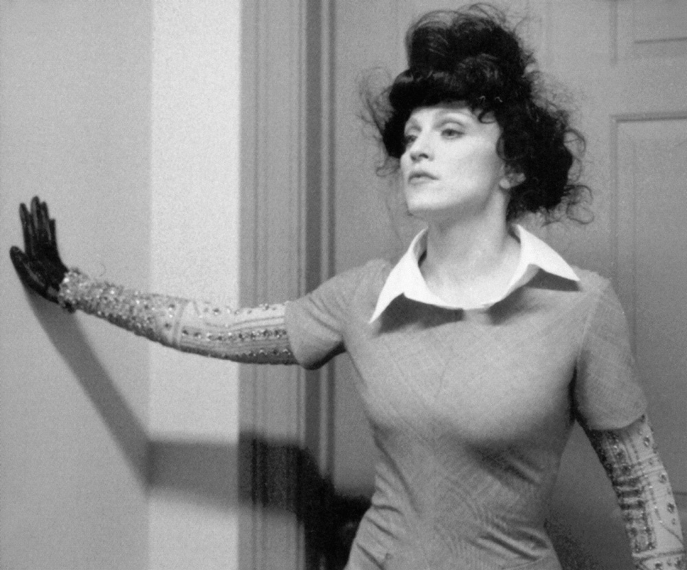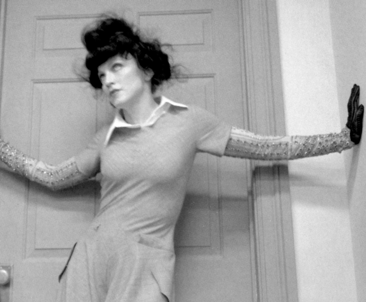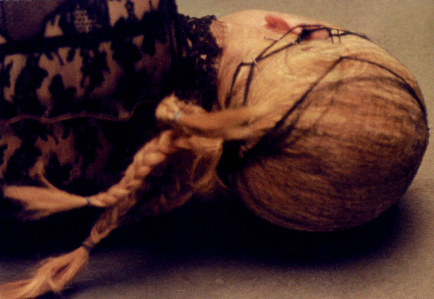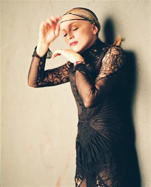 - Conjunto mangas cortas y bermudas en color beige con cuello y mangas de tul y piedras de la colección primavera-verano 2004 de Alexander McQueen.