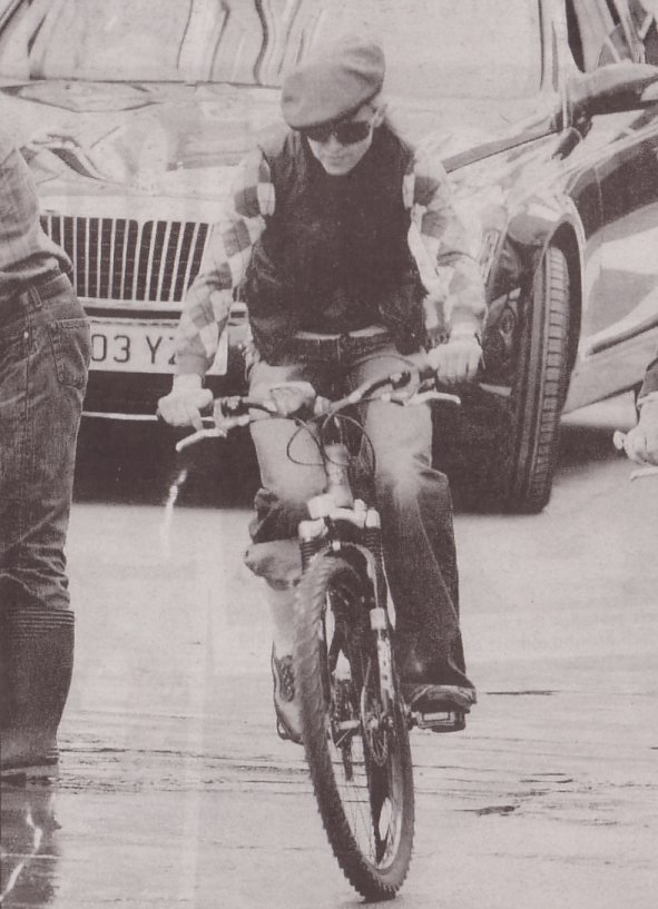 Abajo: en bicicleta grabando algunas escenas para el documental de su gira