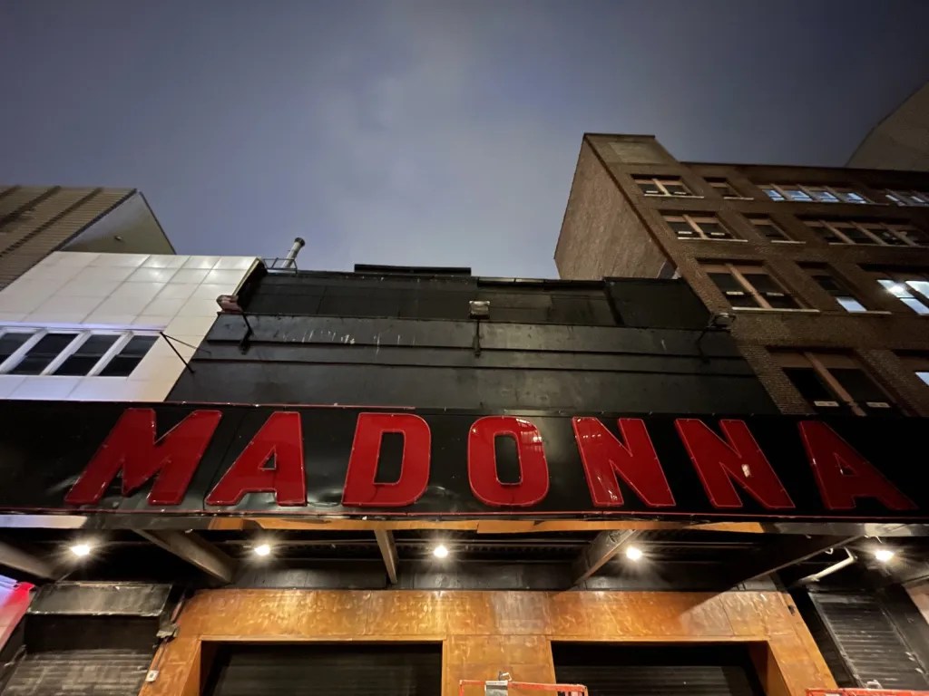 El interior estaba también decorado completamente en honor a la Reina del Pop, gran cantidad de carteles de neón mostraban siluetas con las imágenes más icónicas de la diva, múltiples pantallas y televisores pasando continuamente sus videoclips, además de una gran zona de recepción y venta de merchandising tanto de Madonna como del show. Fotos: @Wilfredo Rivera.