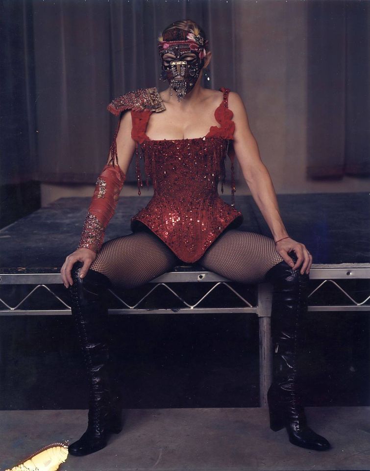 Madonna completó el estilo de este segmento con un minishort de lycra negro, medias de red y botas negras diseñadas por Tom Ford para Yves Saint Laurent. Las botas consisten en botas altas acordonadas (con cremallera oculta) hasta las rodillas y tacón ancho, de cuero negro. Madonna usó estas botas por primera vez en el portfolio de la revista «Vanity Fair» en 2002, por Craig McDean y luego en el portfolio de Steven Klein para la revista «W» en 2003.