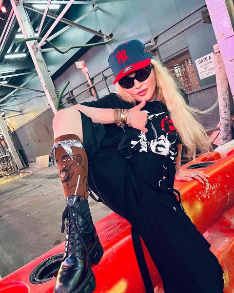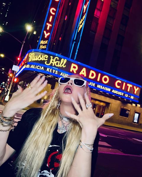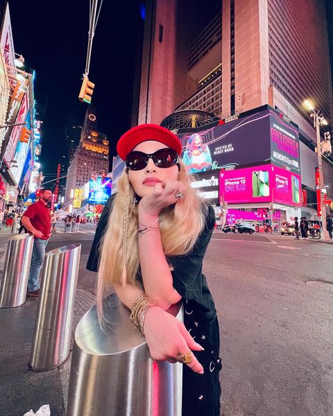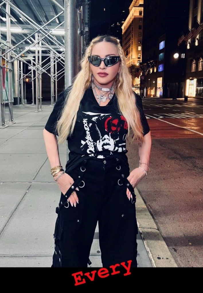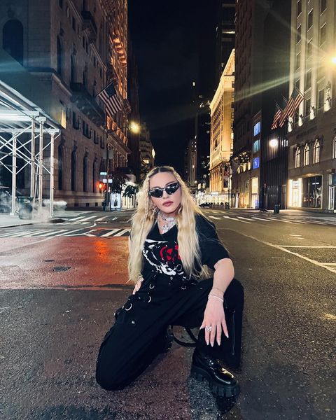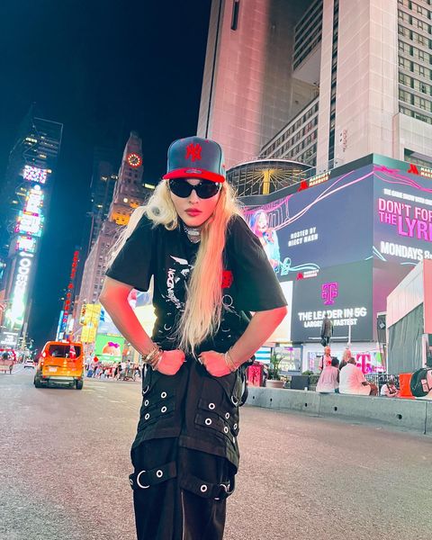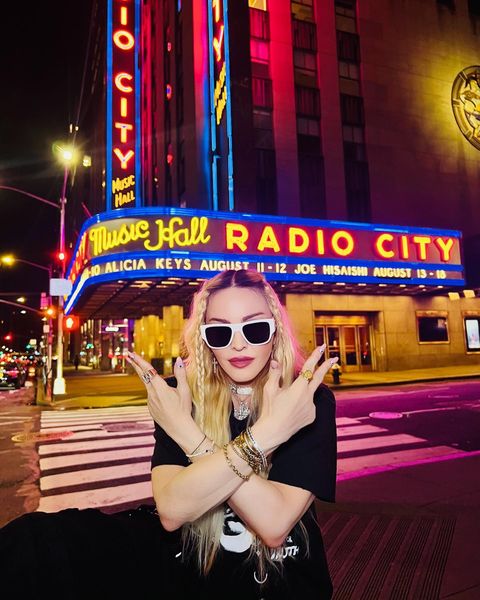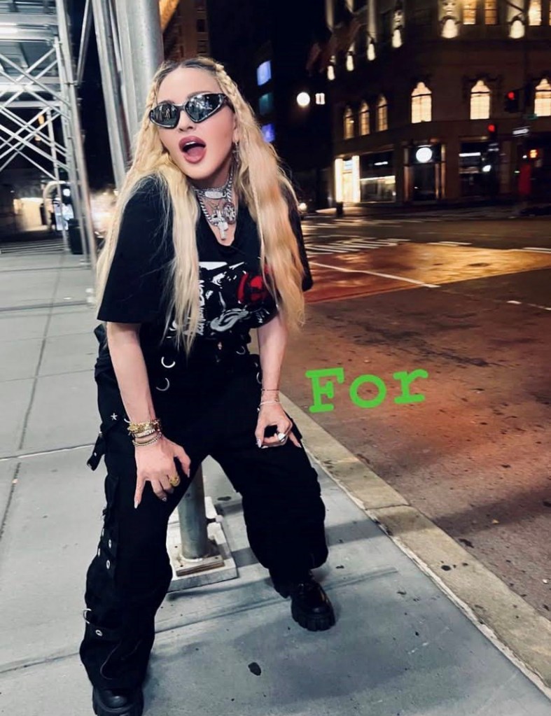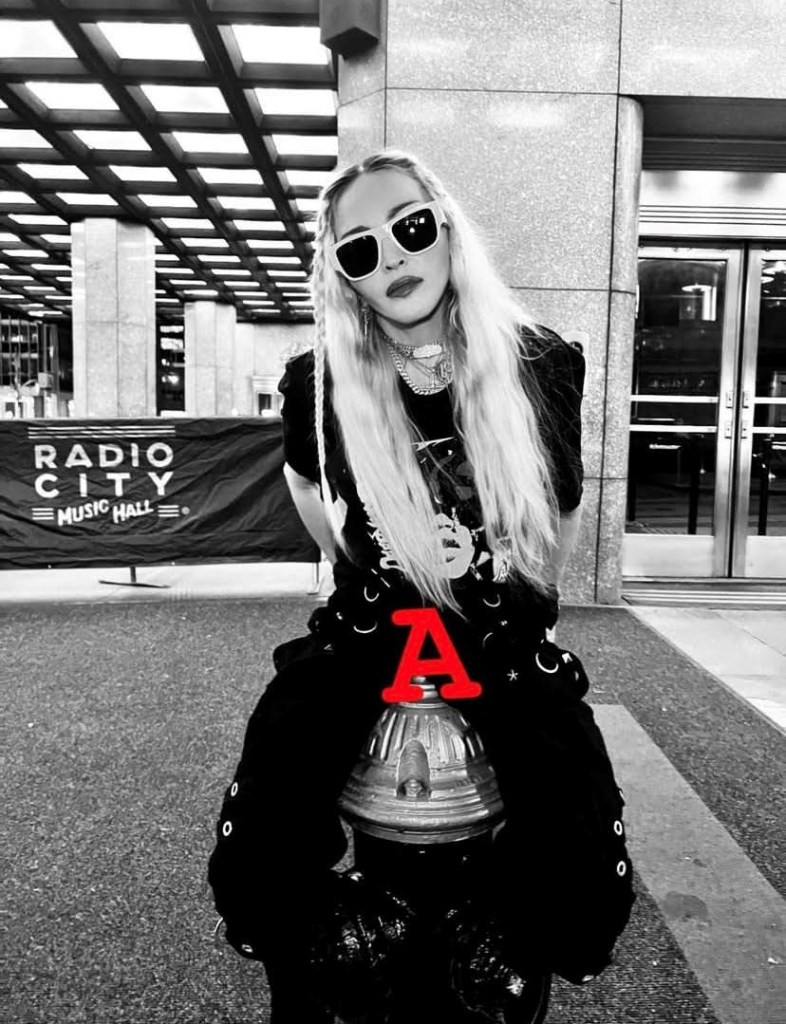 Madonna nos sorprendió a todos subiendo una gran cantidad de fotos a su cuenta de Instagram en donde la vemos posando muy alegremente en el corazón de Manhattan, ni más ni menos que en la puerta del «Radio City Music Hall». En un primer momento, la diva subió algunas fotos a sus Stories de Instagram en donde podíamos leer «Donde todo comenzó…» y «Amo NY», recordando aquellos años de juventud cuando llegó por primera vez a la gran ciudad. En las fotos, tomadas por Ricardo Gomes, la vemos con un look juvenil con pantalones anchos negros, camiseta y botas y con un detalle muy particular: una media con el rostro del rapero Tupac. Madonna posó en el portal de «Radio City Music Hall» como así también en medio de la quieta y solitaria calle de Manhattan. También subió un breve video en donde la vemos bajando de un coche con la música de fondo de su canción «I Love New York» acompañada del texto: «buscando locaciones» por lo que asumimos que la cantante estaría buscando lugares para el inicio de la filmación de su película autobiográfica.