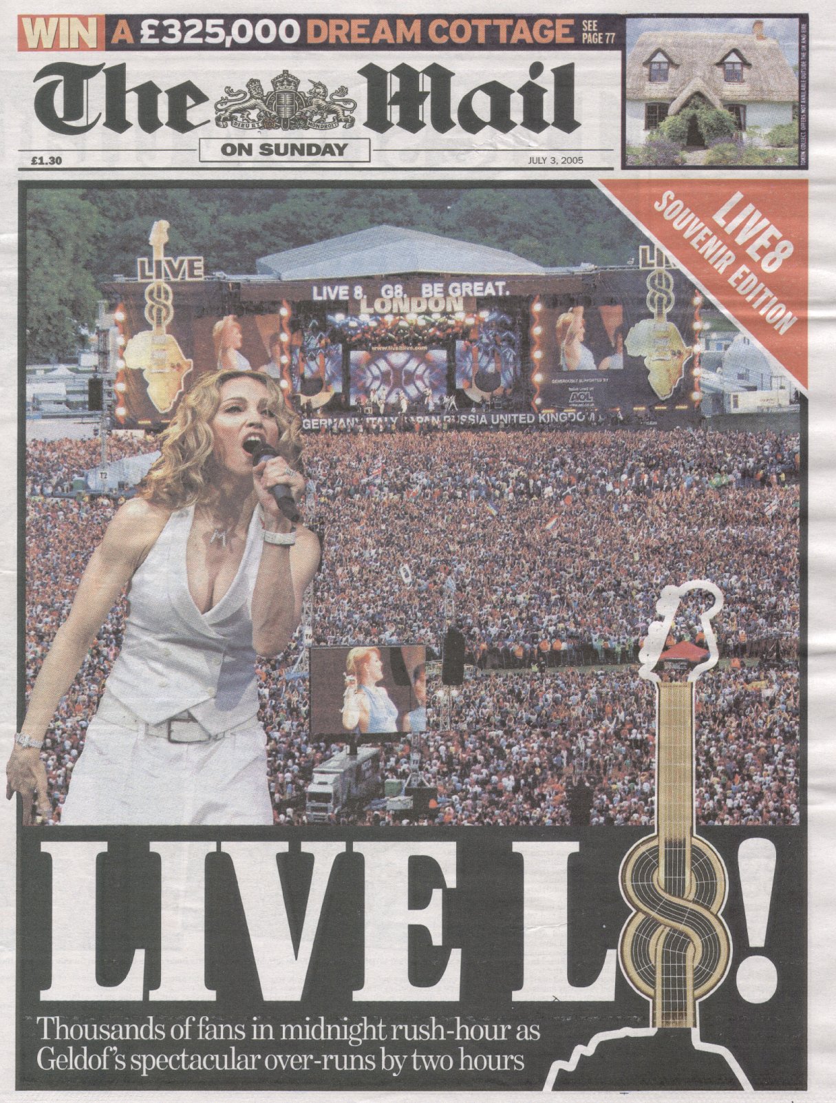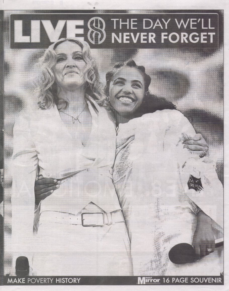 El 02 de Julio de 2005 se realizó «Live 8», una serie de conciertos benéficos que se llevaron a cabo simultáneamente en Londres, París, Berlín, Roma, Filadelfia, Barrie, Chiba, Johannesburgo, Moscú, Cornualles y Edimburgo. Si bien coincidieron con el vigésimo aniversario de «Live Aid», el coorganizador Bob Geldof no vio el evento como el mismo y dijo: «Esto no es Live Aid 2. Estos conciertos son el punto de partida para ‘The Long Walk To Justice’, es la única forma en que todos podamos hacer que nuestras voces se escuchen al unísono». «Live 8» se programó solo unos días antes de la importante conferencia del G8 en Escocia, llamando a los políticos a «hacer que la pobreza pase a la historia».