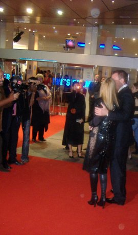 Madonna acompañó a su marido, como ya era sabido, luciendo elegantísima con el cabello liso y un vestido estilo esmoquin de lentejuelas negras de Roberto Cavalli. Para algunos medios, la cantante comentó que no dejaría ver la película a ninguno de sus hijos ya que es un «film para adultos cargado de violencia» a lo que su marido agregó que se «debería ver el film para entender el contexto de dicha violencia». La pareja se mostró muy animada para charlar con la prensa a pesar de haber llegado extremadamente tarde al evento. Madonna también comentó que su cabestrillo que le protegía el brazo luego de su accidente sería removido la semana entrante.