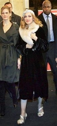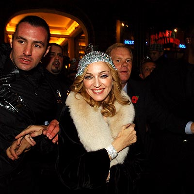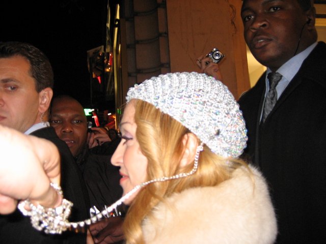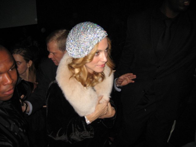 Para esta noche, Madonna lució un vestido de seda negro, un abrigo de terciopelo negro con cuello de piel de la colección otoño-invierno 1998 de «Bluemarine», bolso negro con cadena de «Fendi» y sandalias plateadas con cristales de la colección primavera-verano 2006 de «Miu Miu».