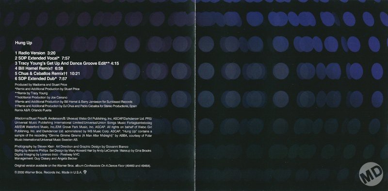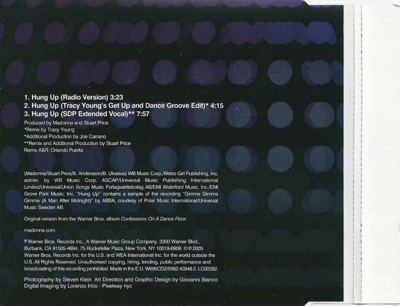 - «Hung Up» es el primer single del disco «Confessions on a Dancefloor» lanzado el 17 de Octubre de 2005.
