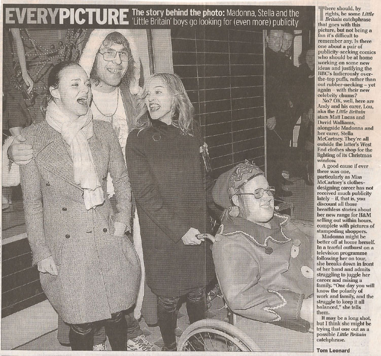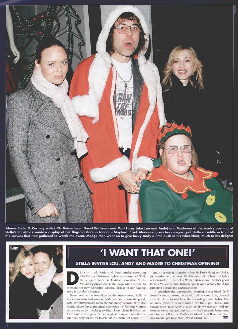 Madonna acompañó a su amiga, la diseñadora Stella McCartney durante el acto de encendido de las luces navideñas de su tienda ubicada en Bruton St. en la capital inglesa. Como todos los años, la tienda de McCartney se caracteriza por la impresionante decoración de luces navideñas que no sólo abarcan los escaparates y ventanas sino también todo el edificio. El encendido de luces de navidad es un clásico en Londres, hábito que han tenido desde siempre las grandes tiendas y mercados de la ciudad. La cantante arribó sola al evento, completamente cubierta con un sobretodo negro para protegerse del extremo frio. Se mostró muy animada y de buen humor, posando cariñosamente con su amiga. Junto a ellas las acompañaban los comediantes David Walliams y Matt Lucas del programa humorístico «Little Britain». Fotos de David Fisher/Shutterstock.