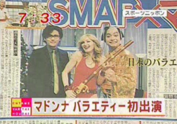 El día 09 de Diciembre, Madonna realiza la participación en el programa de televisión «Smap x Smap» grabado en el estudio A2 en «Tokyo Media City Studios» en Setagaya, Tokio. El show estaba presentado por la banda de chicos SMAP en donde uno de los presentadores del programa fue el samurái que aparece en el interludio del video «Paradise (Not For Me)» realizado para su «Drowned World Tour» (2001). Madonna apareció en dos segmentos: «S-Live» como invitada musical interpretando «Hung Up» con su banda completa y el grupo entero de bailarines y en el segmento «Bistro SMAP» un segmento humorístico de cocina.