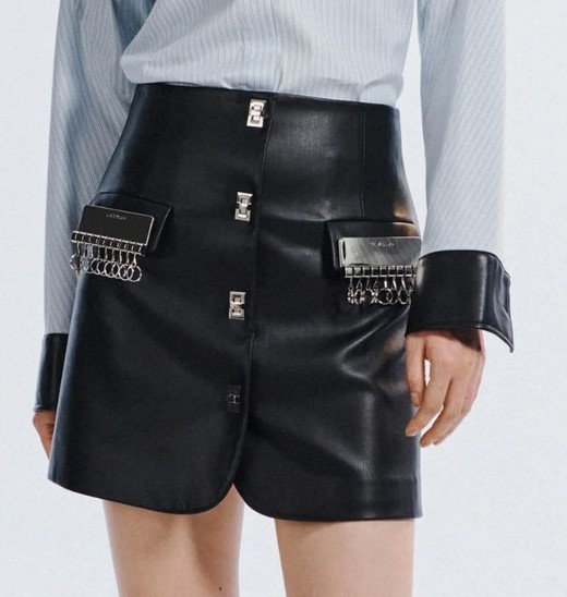 - Falda de cuero negro de la colección primavera-verano 2022 de «Calvinluo».