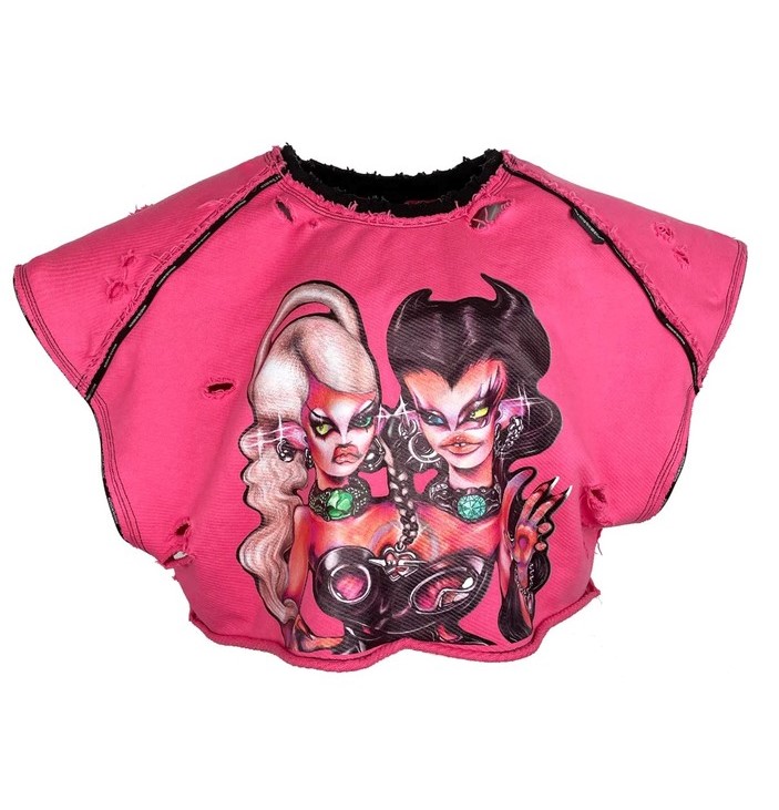 - Camiseta cortada y con roturas fucsia con estampado en pecho de la colección primavera-verano 2022 de «Windowsen».