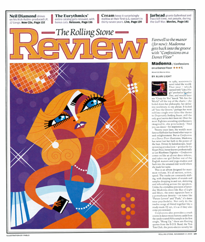 La composición de canciones de Madonna siempre ha sido su cualidad más subestimada. Pero si bien «Confessions» da en el blanco de la funcionalidad disco, su mayor fortaleza es también su debilidad. Al final, las canciones se confunden, confiando en la considerable magia de producción de Price para crear tensión o distinción. Saliendo de su último álbum, el tibio «American Life», la madre de dos hijos de cuarenta y siete años quiere demostrar que todavía puede trasnochar. «Confessions on a Dancefloor» no resistirá la prueba del tiempo como sus gloriosos primeros éxitos de club, pero demuestra su punto. Al igual que Rakim en su día, Madonna aún puede conmover a la multitud. >>