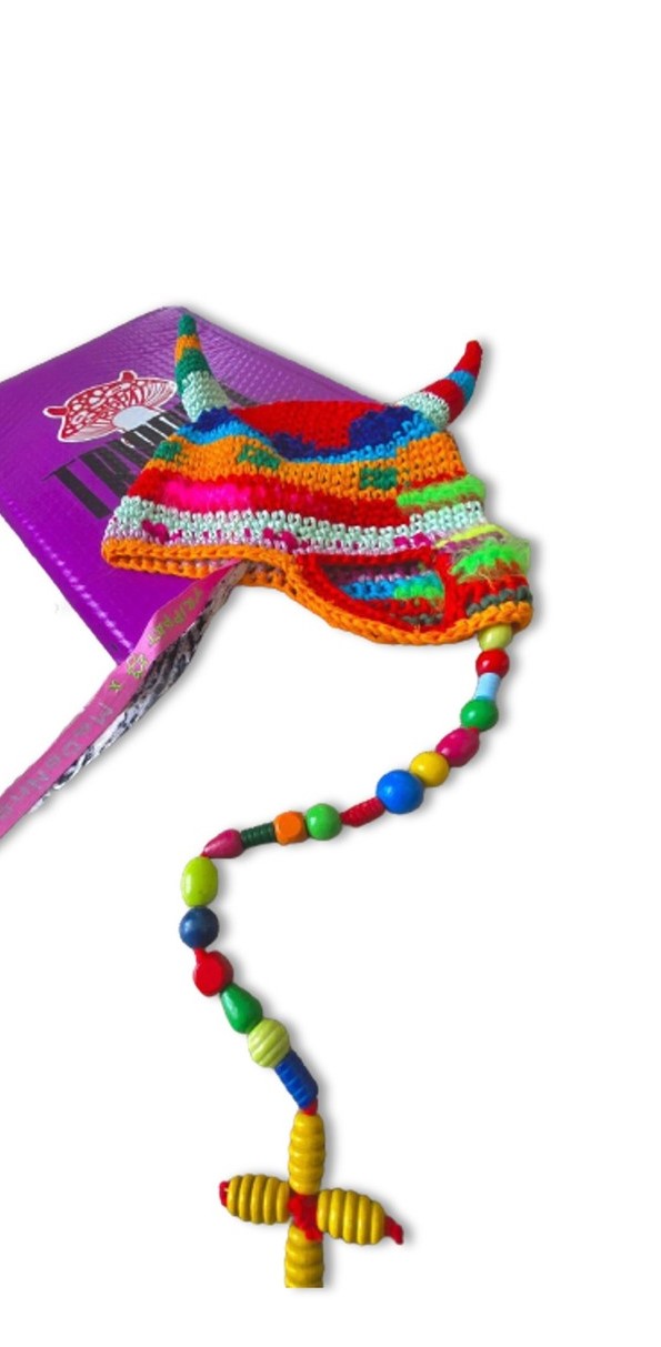 - Gorro de lana tejido con cuernos modelo «Oni» realizado especialmente para Madonna por la firma «Trippat» en conjunción con el fotógrafo Carlo Rossi.