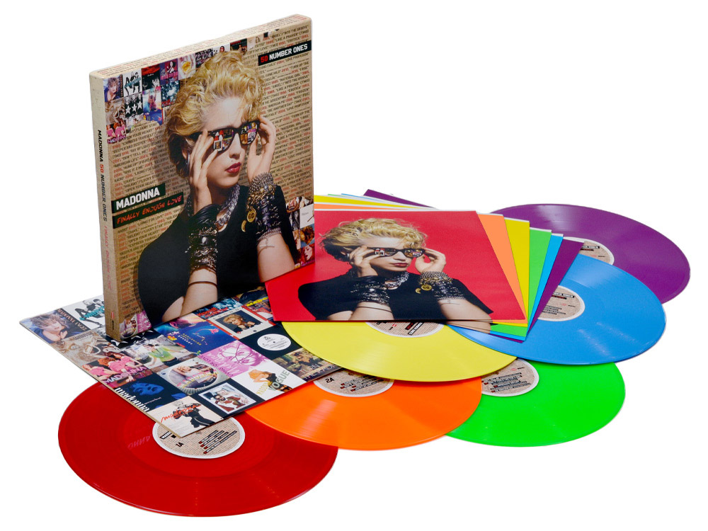 - Además, se lanzó la colección completa de 50 tracks con un arte y diseño diferente en una versión de 3 CD (U$S29.98) y una versión de edición limitada de 6 LP en vinilo rojo y negro (U$S149.98), exclusivamente en la tienda oficial de Madonna y Rhino.com, que puede pre-ordenar aquí. Todas estas ediciones ya están en los primeros puestos de ventas en casi todas las plataformas de venta online, siendo ya N°01, N°03 y N°07 en Amazon.com y comenzando a quedar agotadas en algunos de los sitios publicados.
