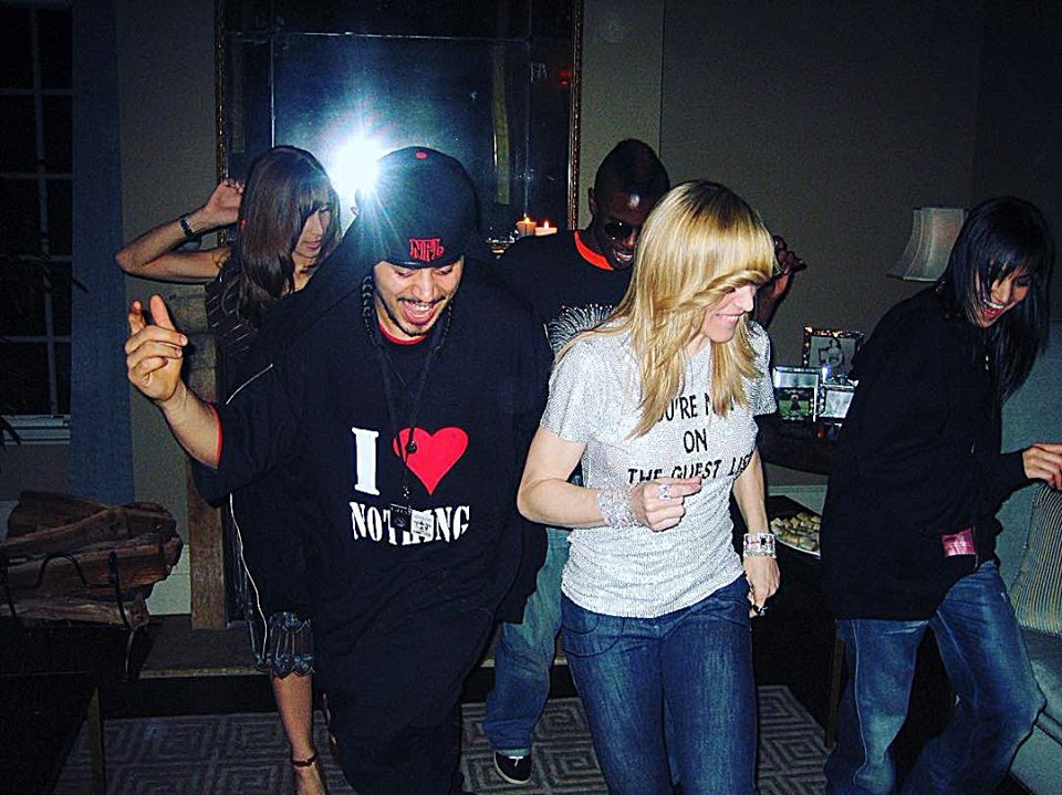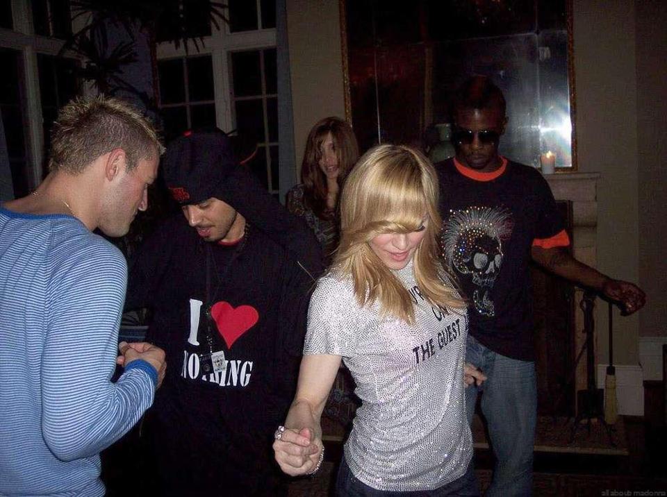 Más tarde, con un atuendo más cómodo (jeans y camiseta) la Reina del Pop se dispuso a disfrutar de la noche junto a un grupo de amigos y todos sus bailarines.