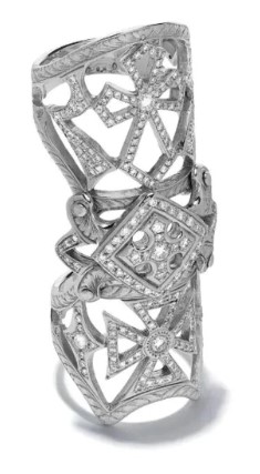 - Anillo de plata y diamantes con cruces estilo bondage de Neil Lane.