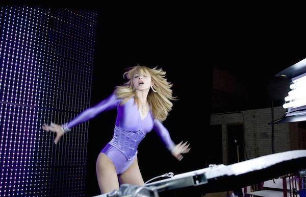 - Leotardo mangas largas en blanco con incrustaciones de cristales realizados especialmente por «Dolce & Gabbana» (Madonna usaría el mismo modelo en lila para su actuación en los Grammys).