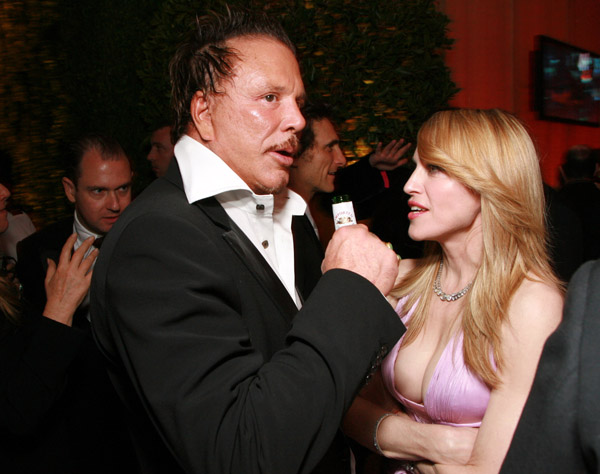 Madonna conversó animadamente con varias celebridades entre ellas Mickey Rourke, Sandra Bullock, Mark Ruffalo y su amigo íntimo el director Alek Keshishian.