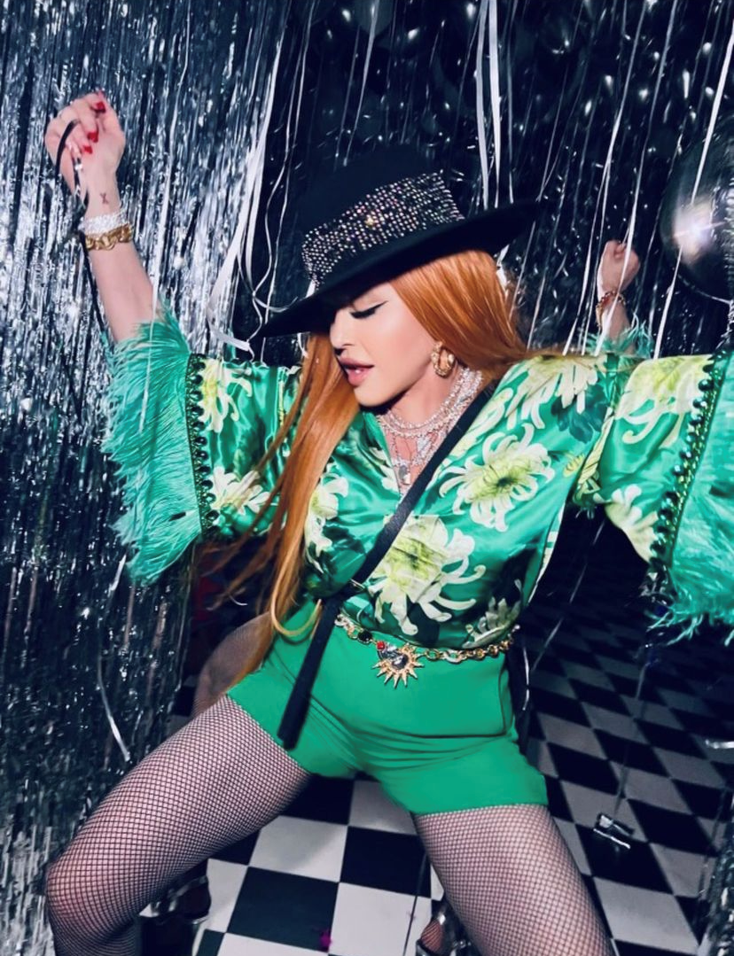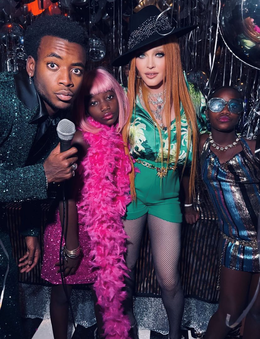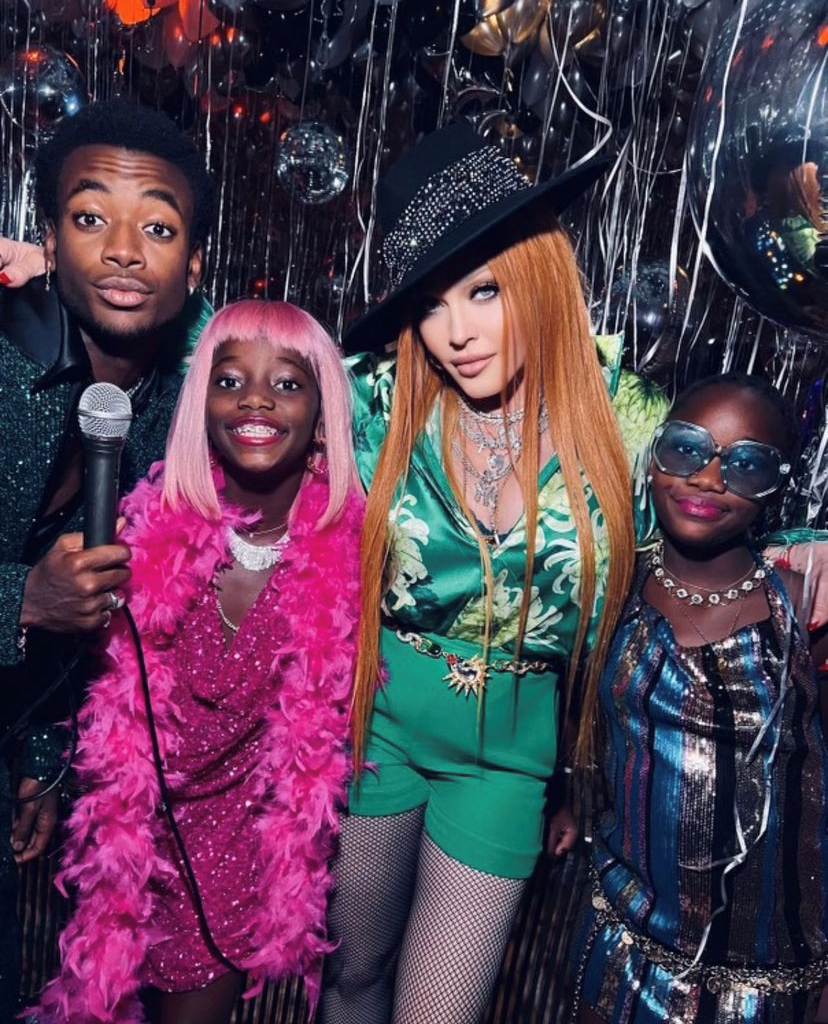 David Banda, el primer hijo adoptivo de Madonna, cumplió 17 años y la familia decidió celebrarlo a lo grande. Primero, Madonna y su hijo adolescente, decidieron ir a ver el show de Harry Styles en el «Madison Square Garden» la noche del 24 de Septiembre. La cantante subió un video a sus redes sociales en donde se la veía festejando junto al joven mientras se dirigían rumbo al estadio. Luego, se realizó la fiesta oficial, esta vez con una temática «disco» titulada «Disco Inferno». El lugar estaba decorado para la ocasión con cientos de globos por todo el techo, bolas de espejos y cortinas de brillantes. David lucía un traje estilo años 70s de lentejuelas verde y hasta tapado de piel. Sus hermanas Mercy James y las gemelas Estere y Stella también estaban acorde con coloridos vestidos, pelucas y boas de plumas. Madonna optó por un conjunto de short y blusa en todos de verde con un gran sombrero negro.