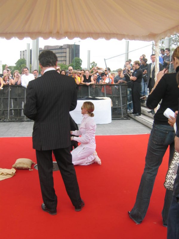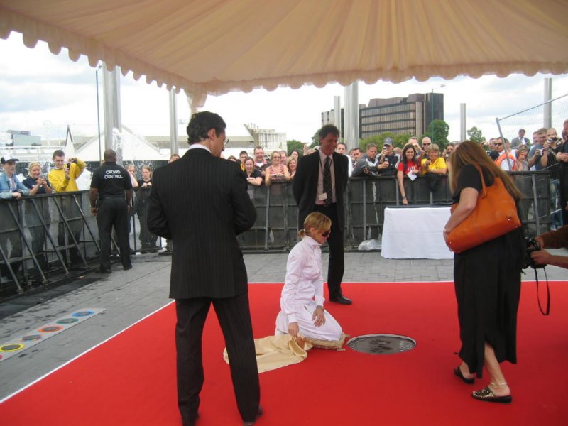 Apenas llegada a Inglaterra para continuar con el segmento europero de «The Confessions Tour», Madonna se tomado un momento de los ensayos del show para presentarse en la inauguración de la «Galería de la Fama del Wembley Arena», convirtiéndose en la primera estrella en ser honrada en la nueva Plaza de la Fama del lugar. Los propietarios del lugar, Quintain Estates, quieren que la plaza sea una «característica al estilo de Hollywood» para honrar a los mejores artistas y se espera agregar a Kylie Minogue y George Michael en los próximos meses. Madonna dijo: «Espero ver a otros artistas agregando sus huellas junto a las mías». Después de la inauguración, la cantante regresó rapidamente para continuar ensayando para su próximo show en Cardiff; «No importa cuántos conciertos hagas, todavía tienes que hacer ensayos», comentó.