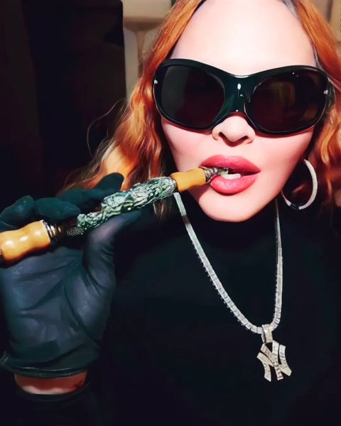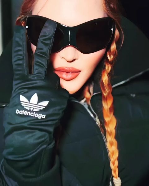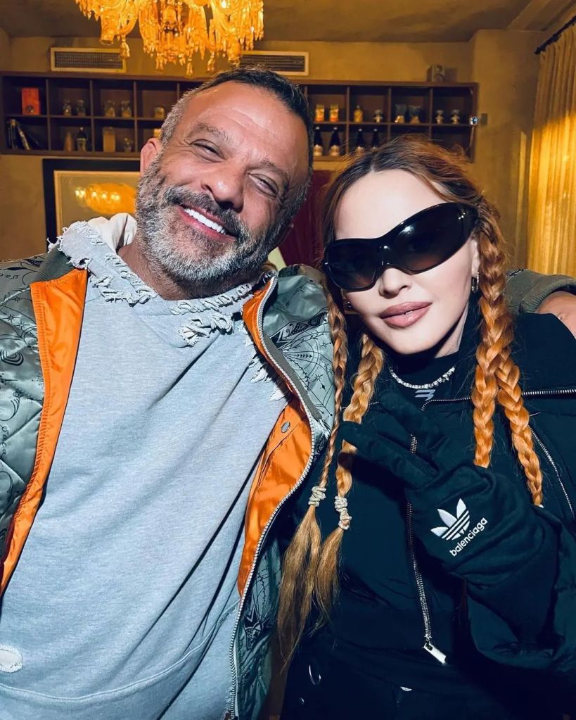 Madonna nuevas fotos en sus Stories de Instagram, con abrigo negro y gafas envolventes, también se mostró junto al artista Adam Weistman.